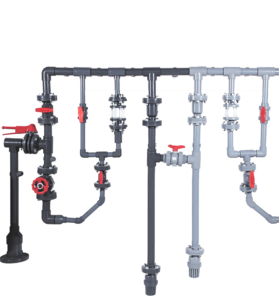 閥門系列產品如:隔膜閥、蝶閥、球閥、截止閥、止回閥、耐腐蝕泵等。主要材質有CPVC、UPVC、PVDF、PPH、FRPP等。
